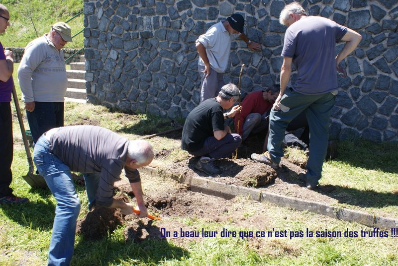 Nous étions onze samedi 21 mai pour rafraîchir la peinture des huisseries et réparer le bandeau de l’avant toit.Dés 9 h momon et Jean-Christophe Debard perchés sur l’échafaudage ont entrepris de main de maître la réparation du bandeau .Le ponçage et la peinture fut l’oeuvre collective de Robert ,Joël Boyer, Nicolas,Stephane Lyaudey,Jean Claude Vachon ,Jean Claude Marin,Sylvain, Paul .René de son côté s’est éreinté pour tenter de déboucher l’évacaution des eaux usées.Le tout dans une ambiance comme on l’aime…A 15h aprés un bon casse croûte ,le chantier était bouclé .Notre chalet a repris un air de jeunesse ,prêt à nous abriter pour de futur moment conviviaux.Merci à tous ceux qui ont pût se libérer et donner de leur temps.